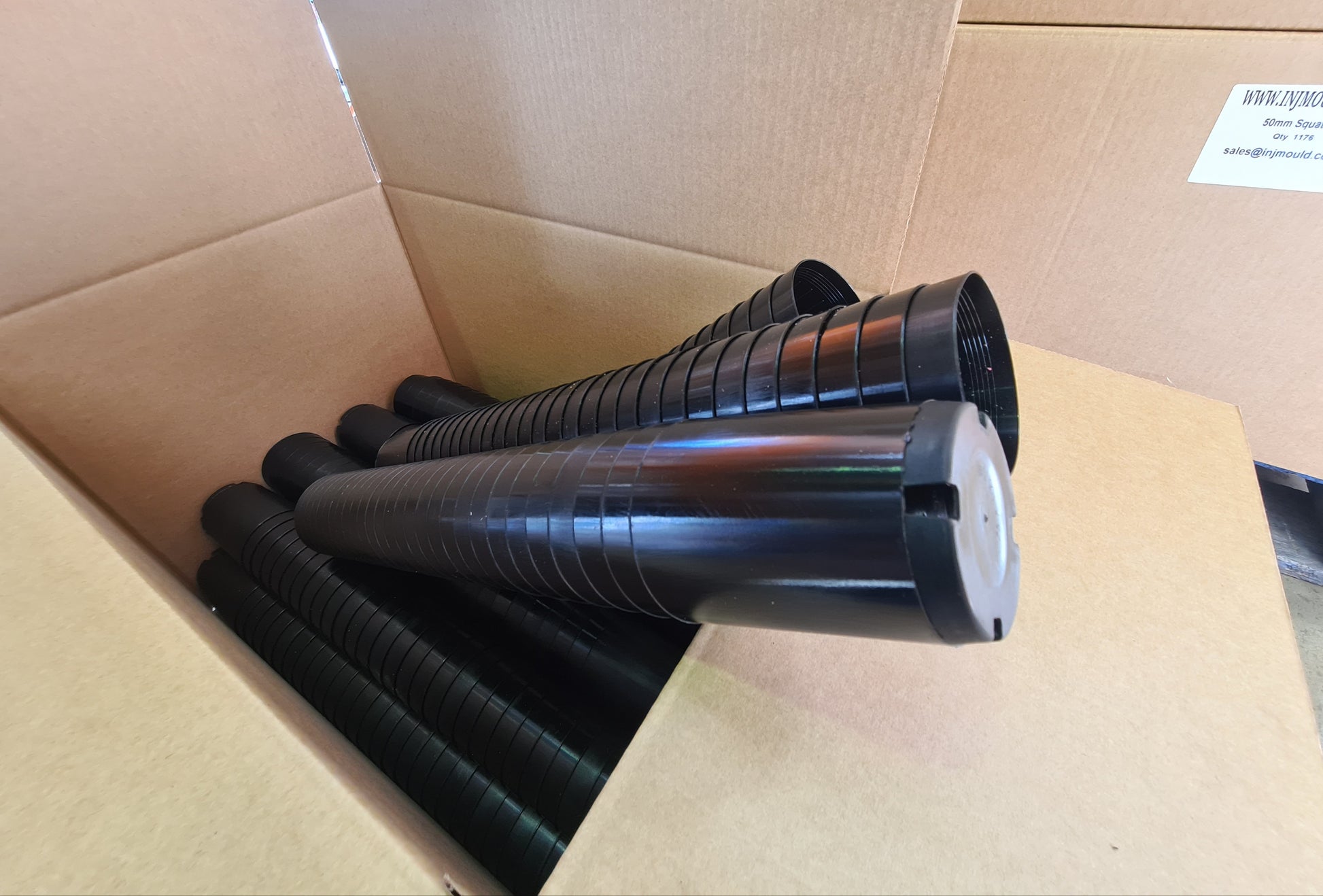 Tube Round Pot Plants - Carton = 620 units, packaged in carboard cartons, only available in black.