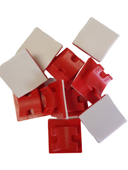 The fasteners are a simple tool that are just as simple to use. Built of high impact resistant nylon with added U.V. light inhibitor for the black and blue saddles only, the fasteners are backed with 3M double side VHB adhesive tape.